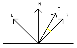 The Phong model begins by defining a reflection vector R, which is a reflection of the