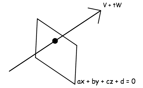 a (vx + t wx) + b (vy + t wy) + c (vz + t wz) + d = 0