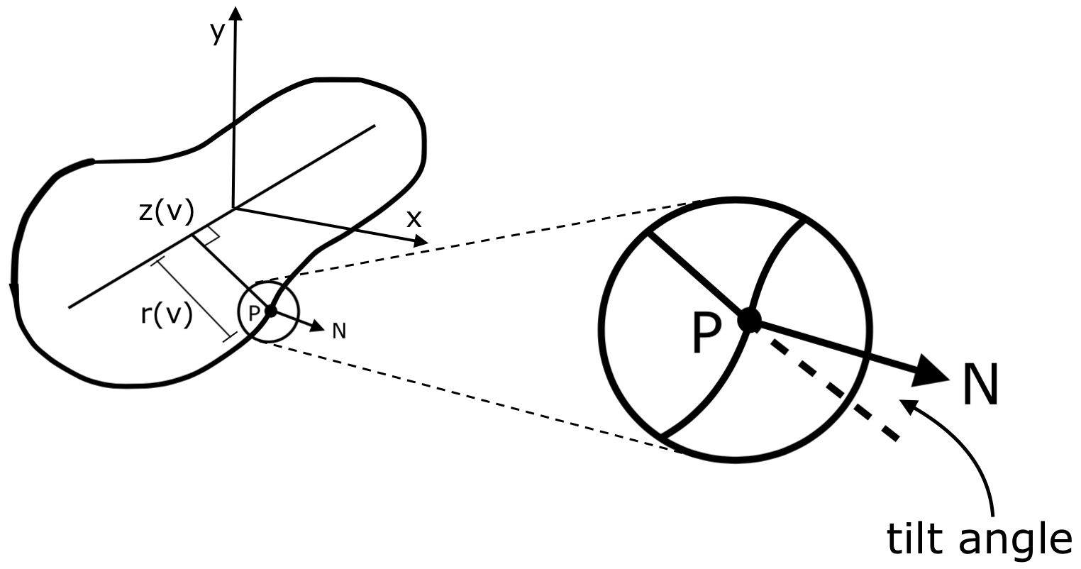 [ r(v) cosθ , r(v) sinθ , z(v) ].